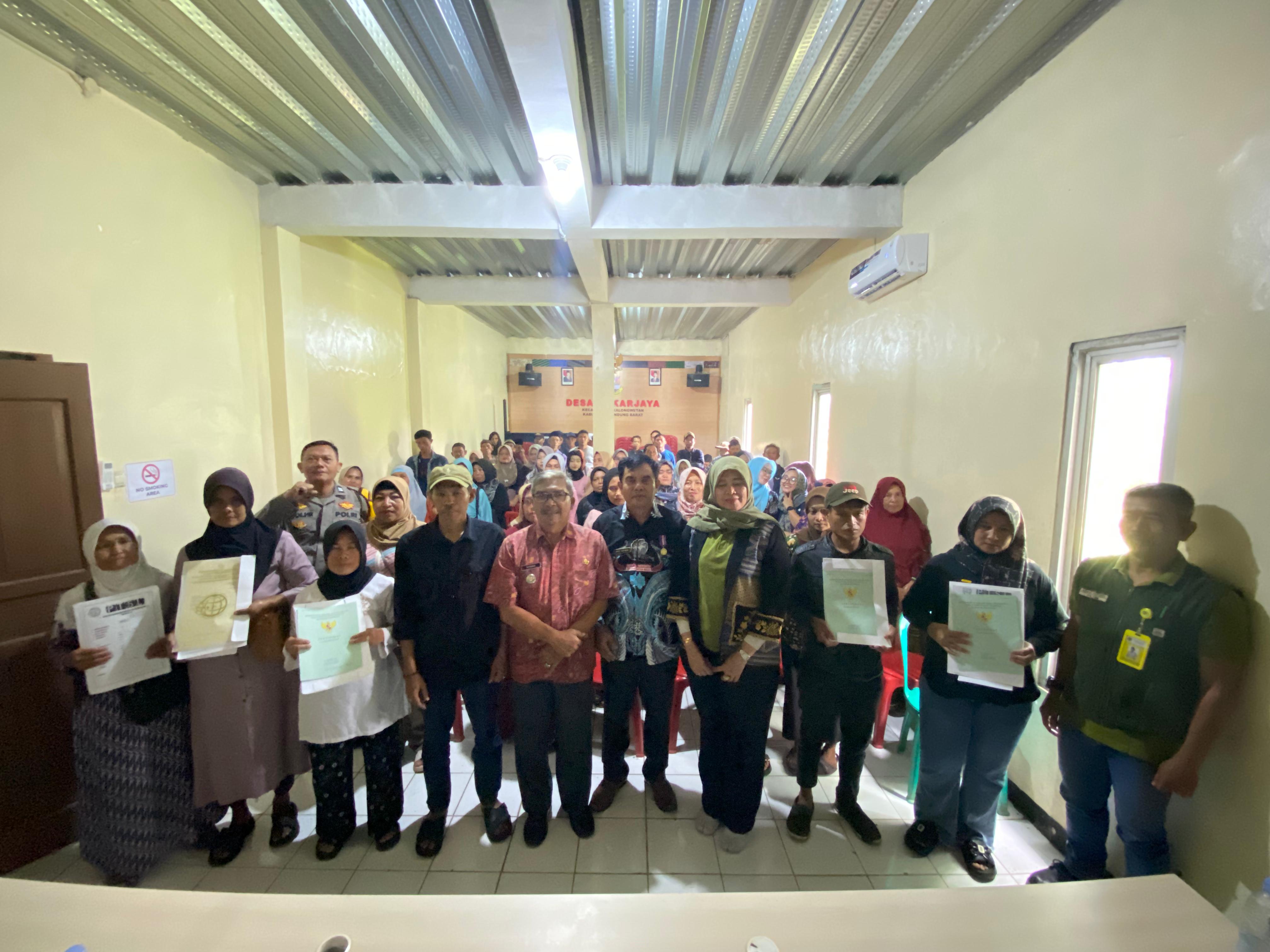 Warga yang berkesempatan menerima sertipikat tahap akhir ini berasal dari Dusun 1 dan Dusun 2 Desa Mekarjaya. Sertifikat tanah yang diserahkan kepada warga terdiri dari dua jenis, sertifikat fisik dan sertifikat elektronik. Sekalipun demikian, kedua jenis sertipikat tersebut memiliki kekuatan hukum yang sama, sehingga warga tidak perlu khawatir kalau menerima sertipikat elektronik yang berbeda dengan sertipikat fisik yang biasa diterbitkan.**